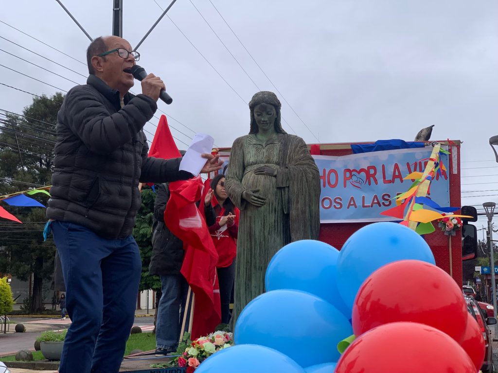 Al llegar al frontis de la Municipalidad, punto culmine de la actividad, Monseñor Stegmeier se dirigió a los presentes desde el escenario móvil. En su alocución, el Pastor enfatizó la dignidad intrínseca de toda vida humana, señalando que en el drama del aborto existen múltiples víctimas: el bebé que pierde la vida y la madre, quien se convierte en víctima de sus propias acciones al perder la paz y la integridad.