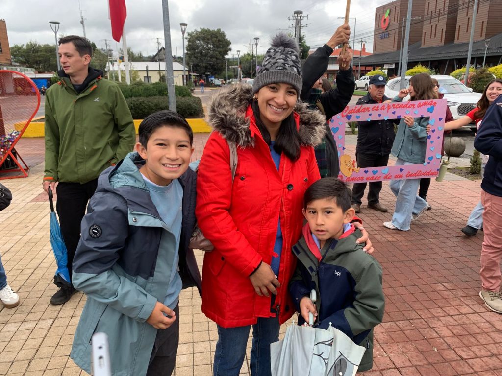 Animados por el canto y la locución de Pablo Cifuentes, la columna de manifestantes avanzó por las calles céntricas de la ciudad portando globos, pancartas y carteles. Entre la multitud destacaron delegaciones de colegios locales y grupos provenientes de comunas aledañas como Lanco, Panguipulli y Teodoro Schmidt, quienes viajaron para sumarse a esta fiesta de la vida.