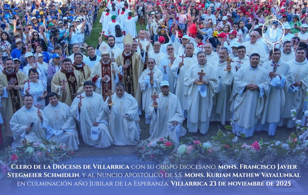 Divino Jesús, que quieres que pidamos al Señor de la mies que envíe a ella buenos operarios, dígnate suscitar en tu Iglesia, y en particular en esta Diócesis de Villarrica, muchos santos sacerdotes, que siéndolo en todo según tu Corazón, procuren celosamente por su sagrado ministerio y la gracia del Espíritu Santo, la gloria de tu Padre celestial, el servicio de la Iglesia y la salvación de las almas redimidas por tu Sangre preciosa. Amén.