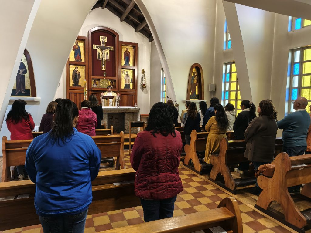 Tras el trabajo de reflexión, las participantes se trasladaron a la Capilla Nuestra Señora de Fátima del Obispado de Villarrica. Allí celebraron la Santa Misa, la cual fue presidida por el Vicario General y asesor de las secretarias parroquiales, Pbro. Andrés Maricán Nahuelfil.